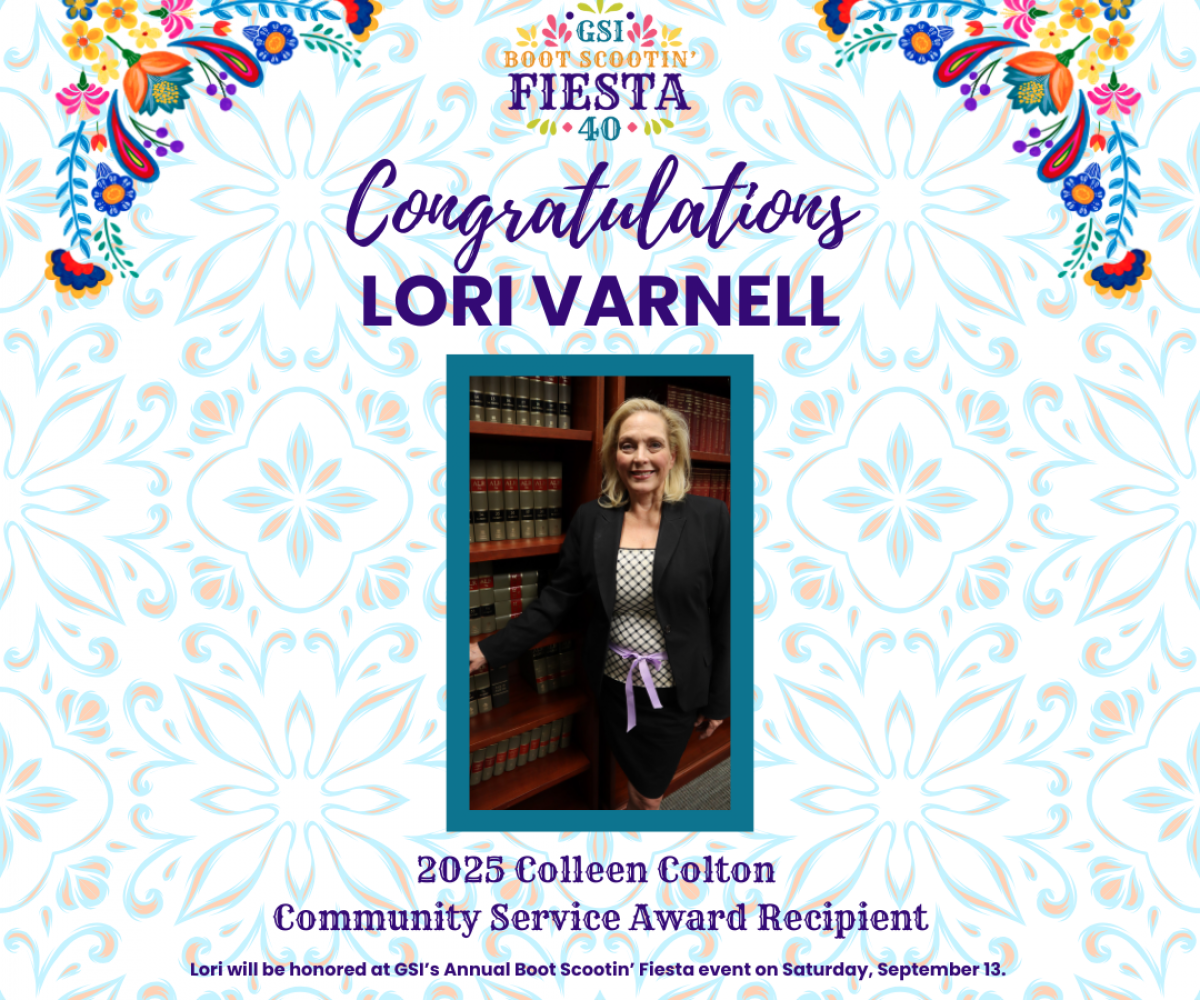 Mark your calendar for GSI's 40th Anniversary Boot Scootin' Fiesta at Ridglea County Club in Fort Worth. Come for fun and games, stay to celebrate our next Colleen Colton Community Service Award honoree, and enjoy live music from local sensations.